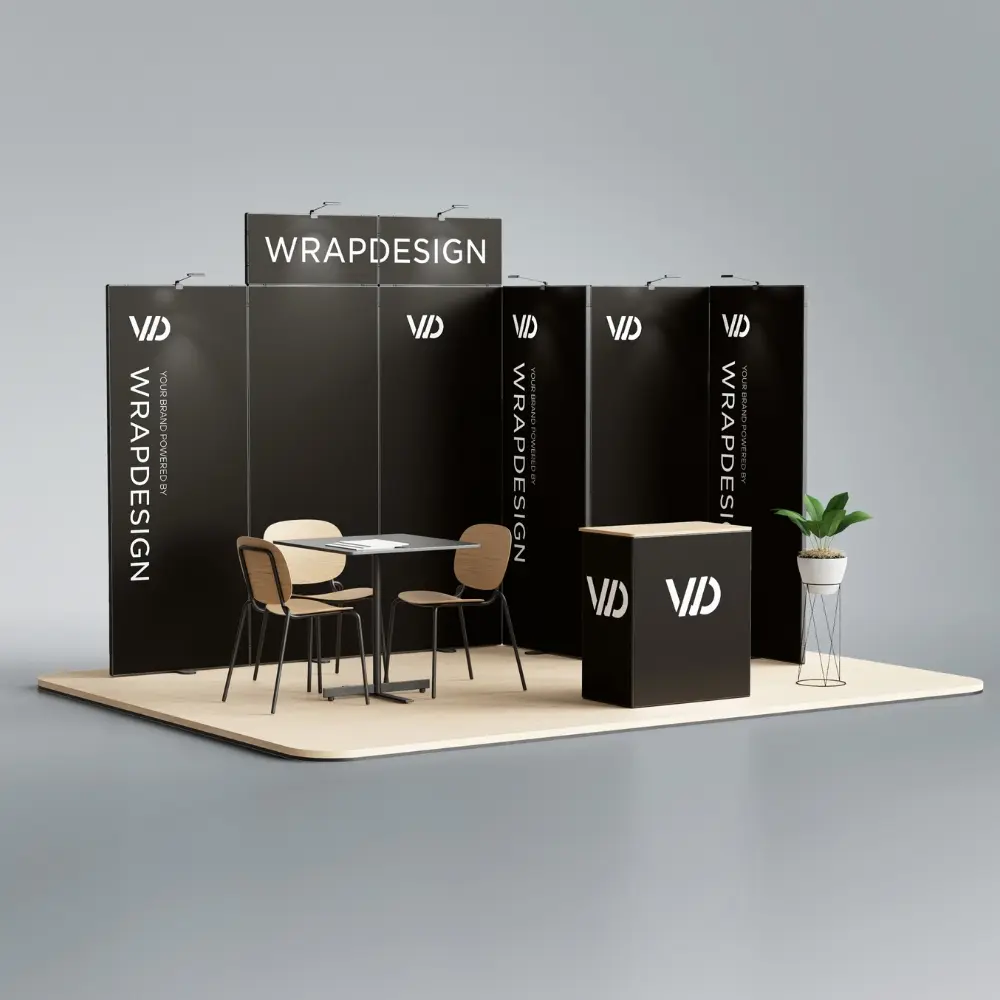 En mässvägg fungerar som bakgrund för din monter och ger en tydlig visuell identitet. Tillsammans med andra produkter som rollups, bord och flaggor skapar den en helhetslösning.